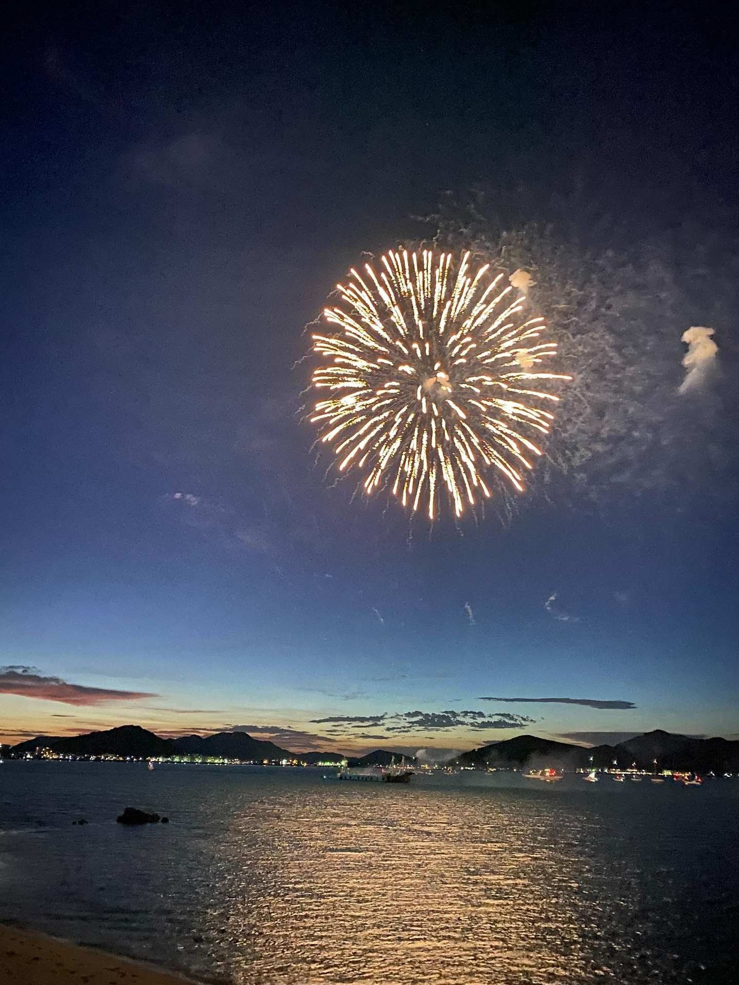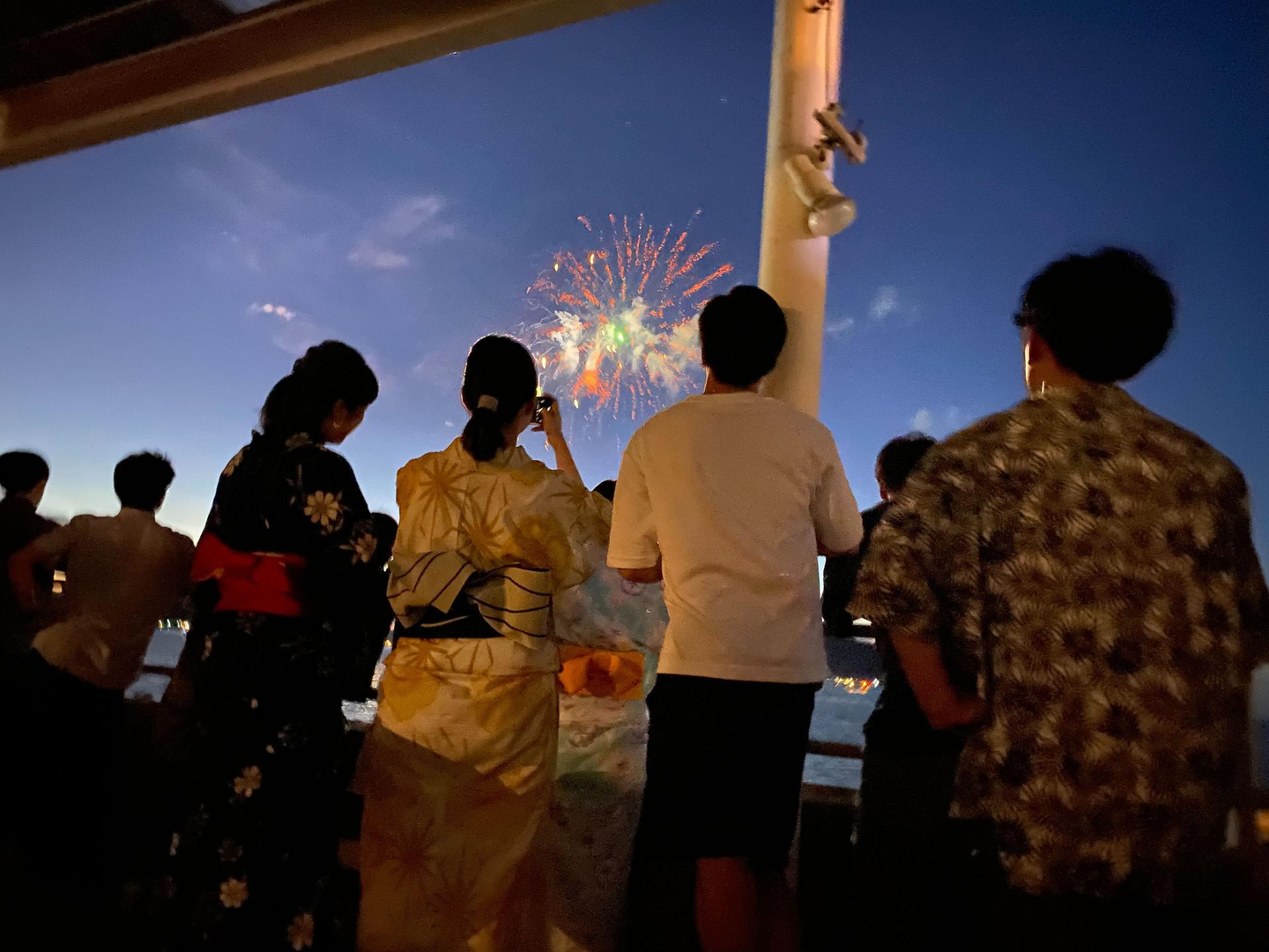 バーベキューサイトの目の前の海上に浮かぶ船からの打ち上げ!