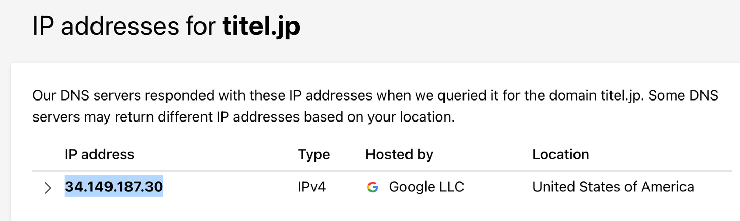 ただ、12 桁の数字を人間が正確に覚えるのは難しいため、IP アドレスに対してドメイン名を割り当てることがインターネットの世界では一般的になりました。米 Google のドメイン名は「google.com」で、タイテルのドメイン名は「titel.jp」です。12 桁の数字を伝えるよりも、titel.jp の方が人間には分かりやすい・覚えやすいのでシンプルな文字列が使われています。