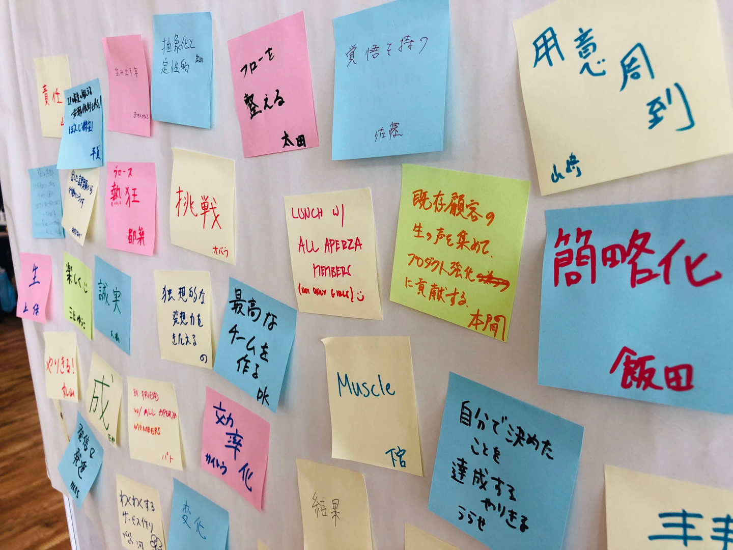 即興で書き出すスタイルだったので、ブレストでお馴染みのポストイットに書いてもらって、ペタペタ。