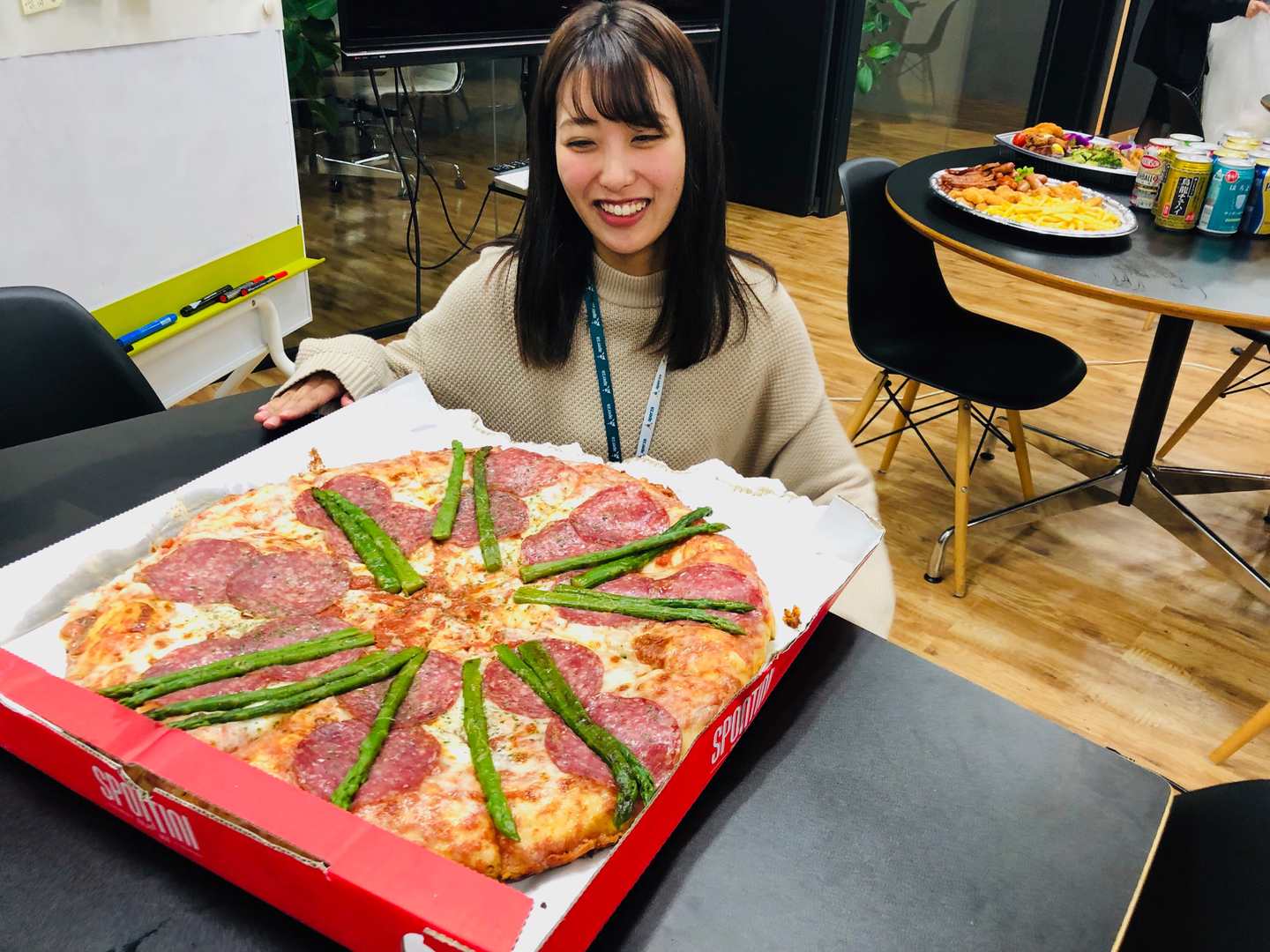 抱負を共有したあとは皆でピザを囲んでワイワイ♪ 懇親タイム。