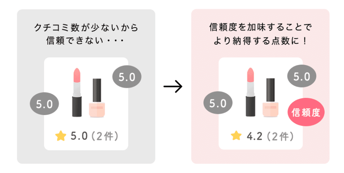 堀江:LIPSのサービス開始当初、星の数は単純な平均値を出していました。しかし、その後はレーティングの専門書を読んで勉強し、学術的知見も取り入れながらアルゴリズムのアップデートを続けてきました。消費者の信頼に足るものを提供し続けることこそが、サービスの長期的な繁栄につながると信じているからです。
