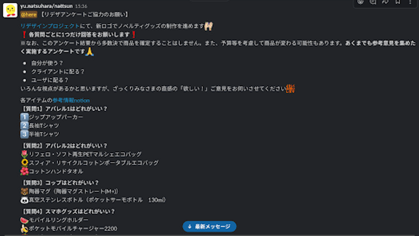 リデザイン後のノベルティ制作について全社アンケートを実施。