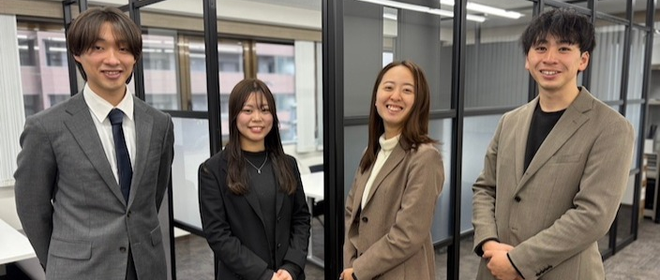 新人と先輩、マネージャー、社長の距離が近く、意見アイデアを聞いてもらったり、相談できる環境を作り出す事に力を入れています!