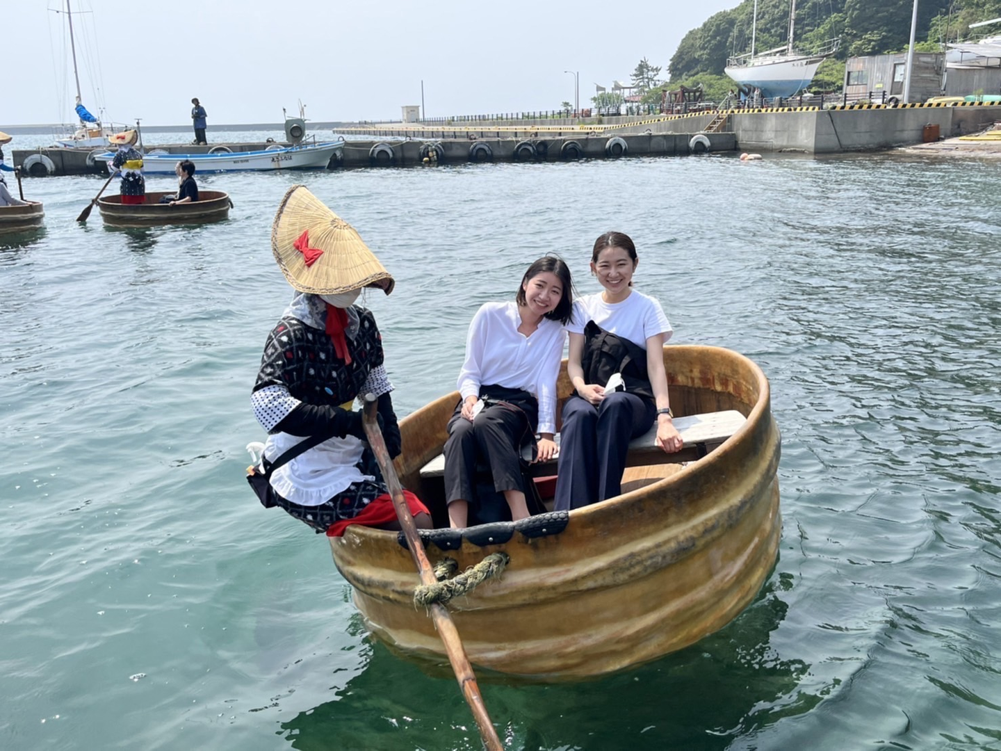 【写真2】後輩と佐渡島出張に行った際、隙間時間でたらい舟に乗りました^^