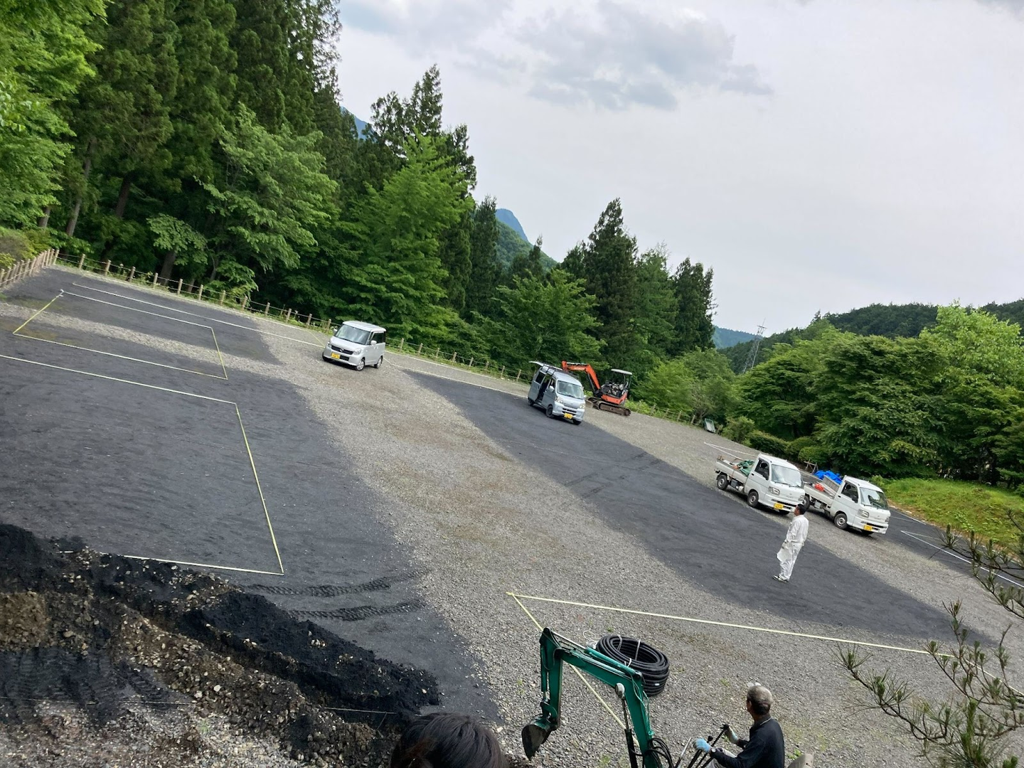 実際に測量を行った後、割合的に上と下を均等にしたいと考え、4:8の割合でテントを建てることにしました。若干下の4テントサイトの方が広めの設定ではありますが、7:5だとちょっと5がきつすぎるよな...とか。
