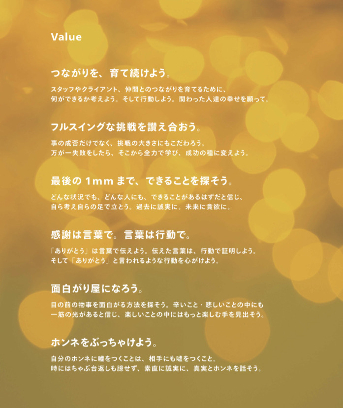 Valueにも「フルスイングな挑戦を讃え合おう」「面白がり屋になろう」とあるように、新卒からでも、とにかく色々な仕事を振ってもらえる環境だと感じます。社員もそういったValueに共感して入社してくる方が多いです。