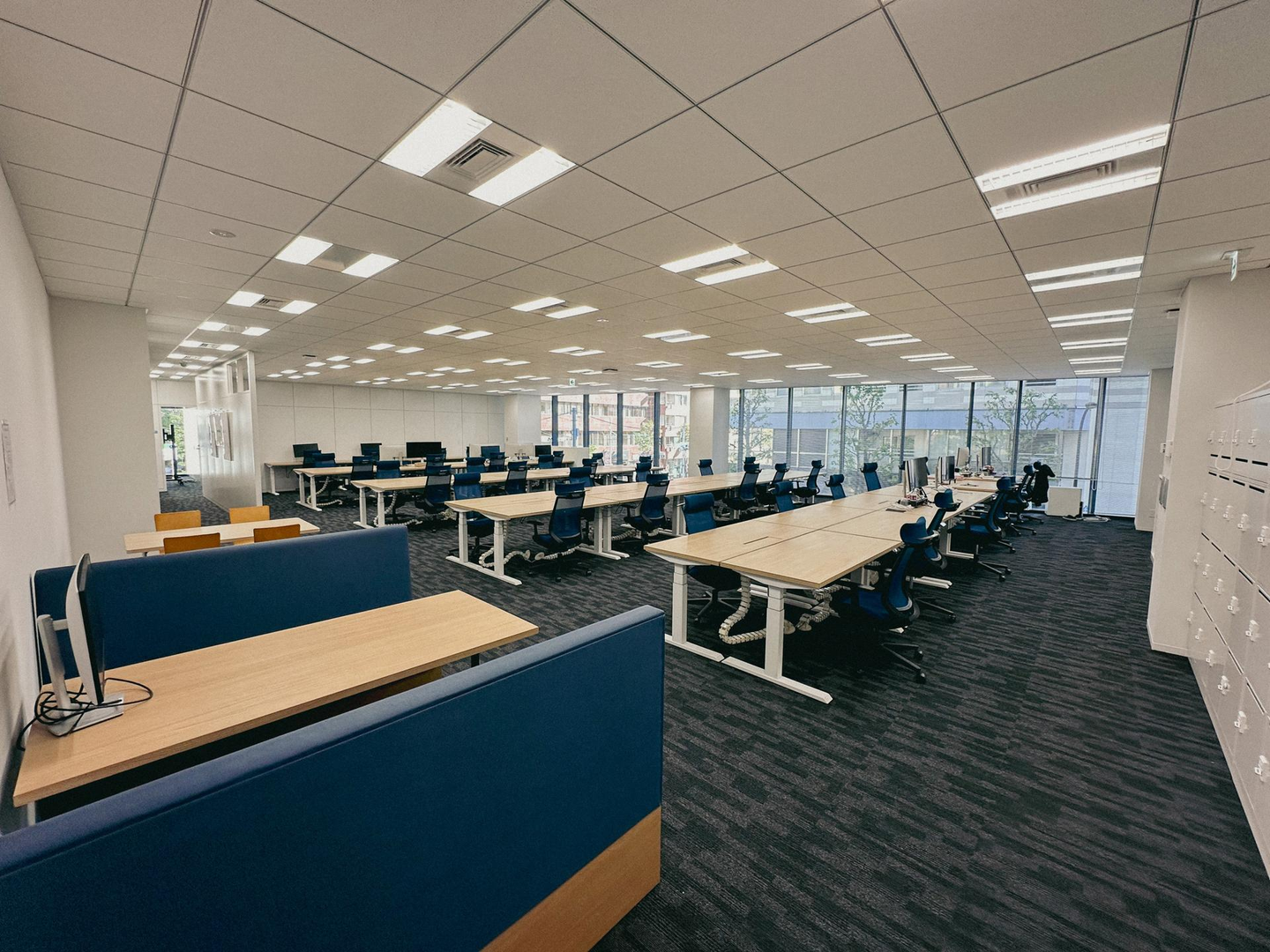 2019年竣工の建物で、今までのオフィスよりもさらに綺麗に、使いやすい工夫が盛りだくさんになりました。