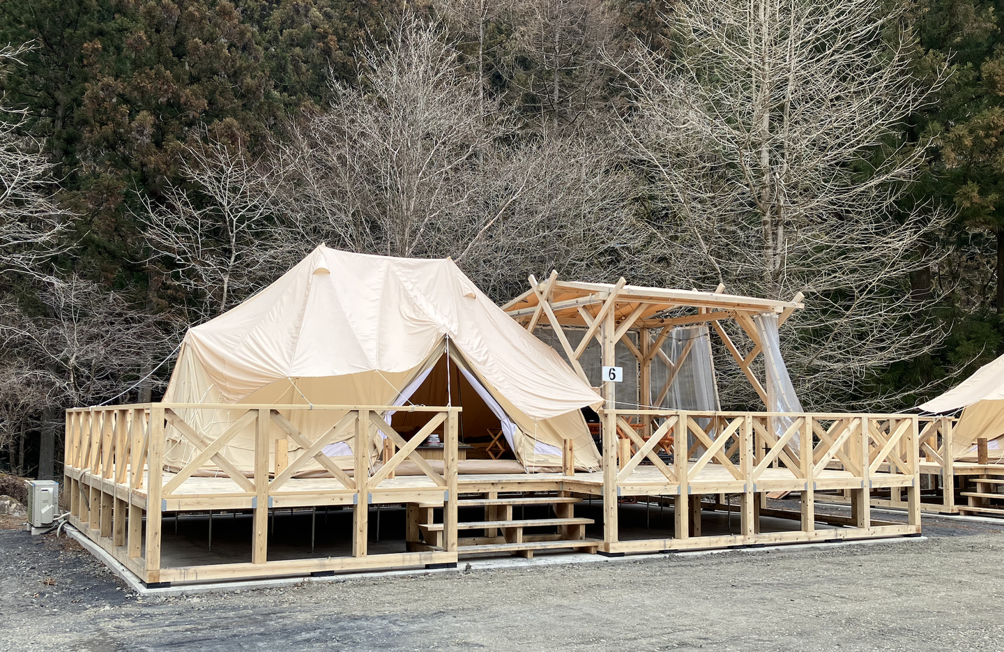 2024年3月からは各テントお部屋にはウッドデッキが整備され、その他の整備も進行している ── 。