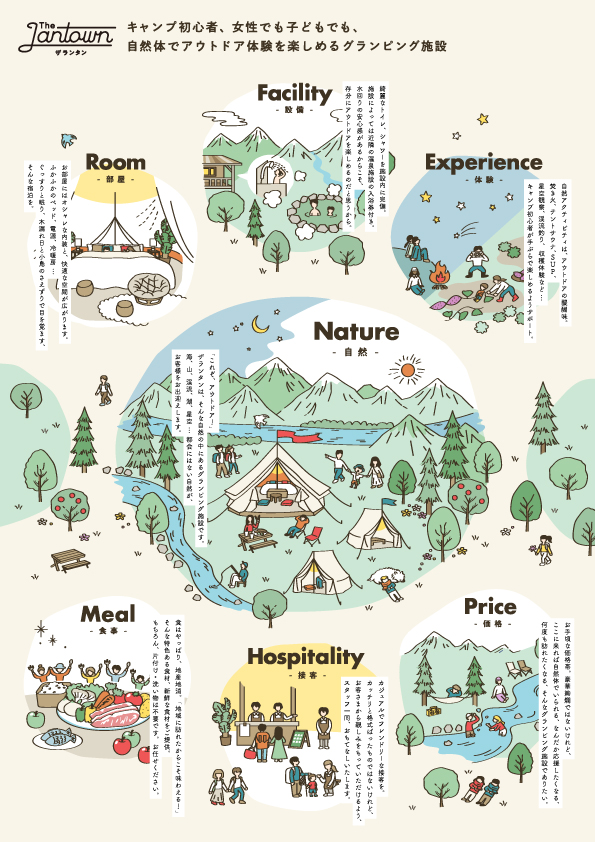 増田「グランピング施設に求めるものを消費者リサーチをすると、大自然に囲まれて過ごす時間・自然体験こそ顧客満足度の向上につながっているとわかった。確かに、水回りが良くても自然感がなかったらただのホテルになってしまうし、いちユーザーである自分の主観で考えても『アウトドアは、自然が豊かな場所でしてこそだな……』と感じていた。」
