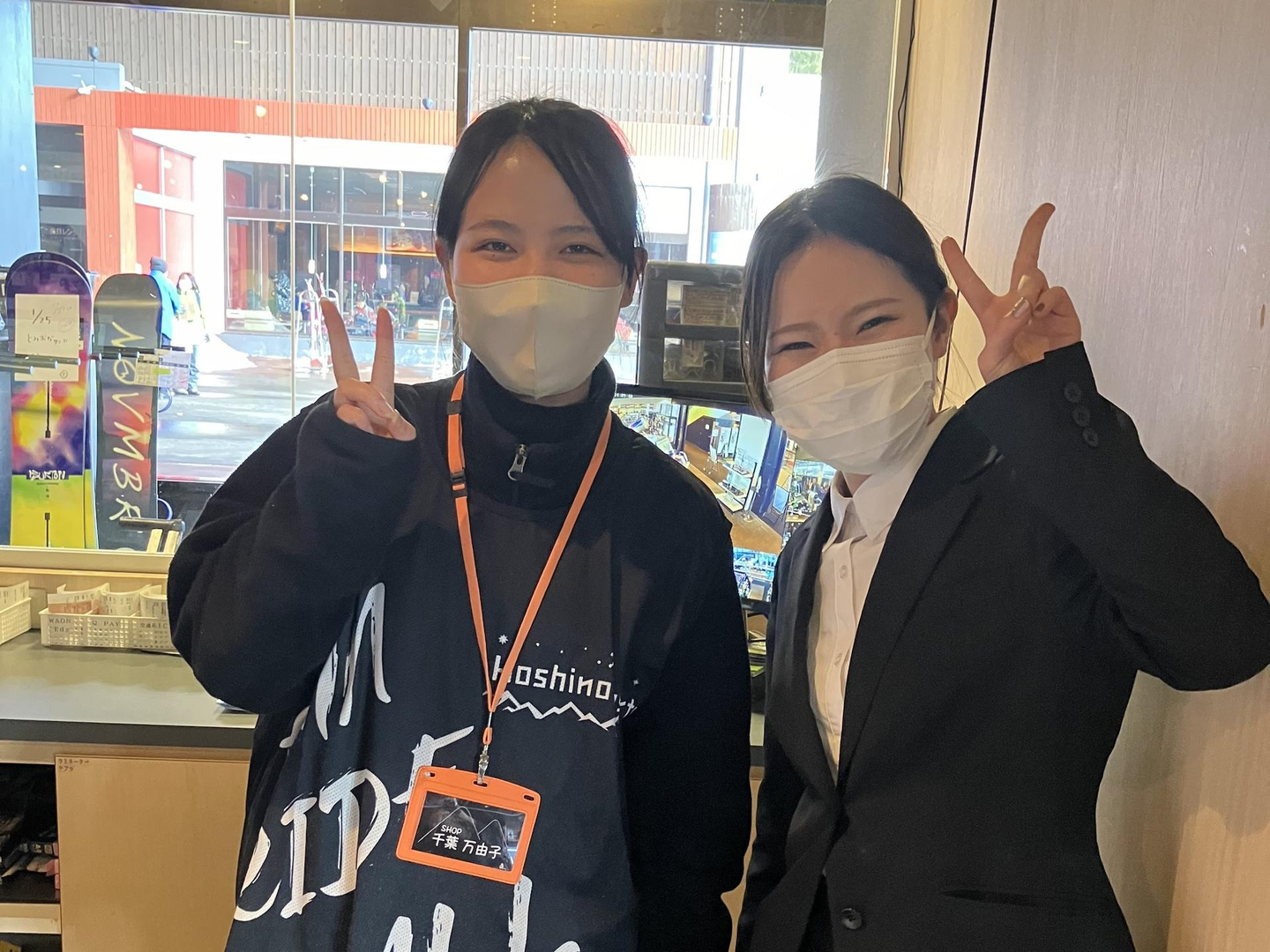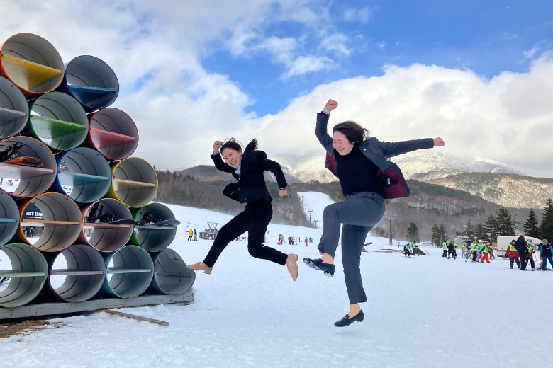 (▼冬の営業先のスキー場で、新卒先輩社員と)