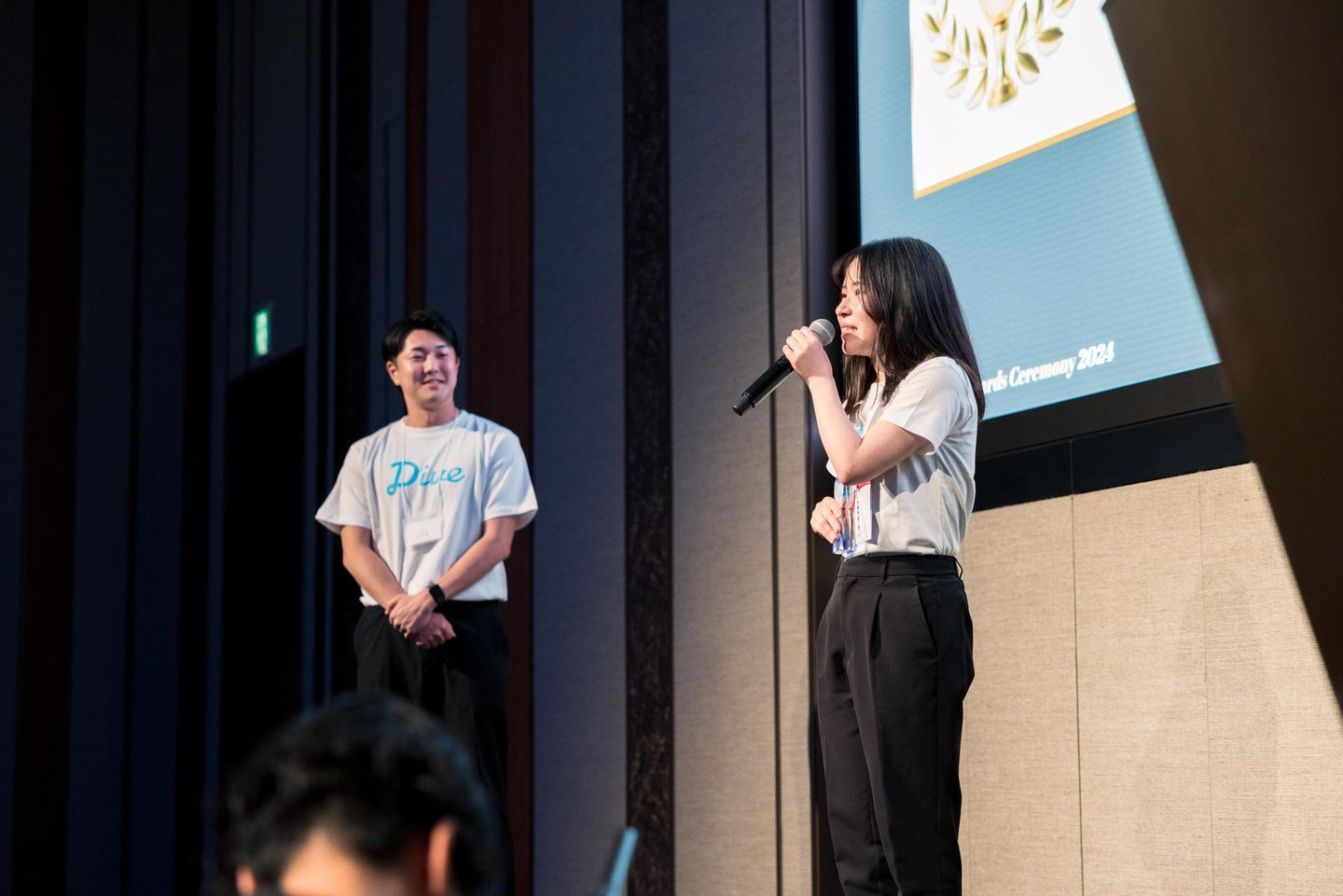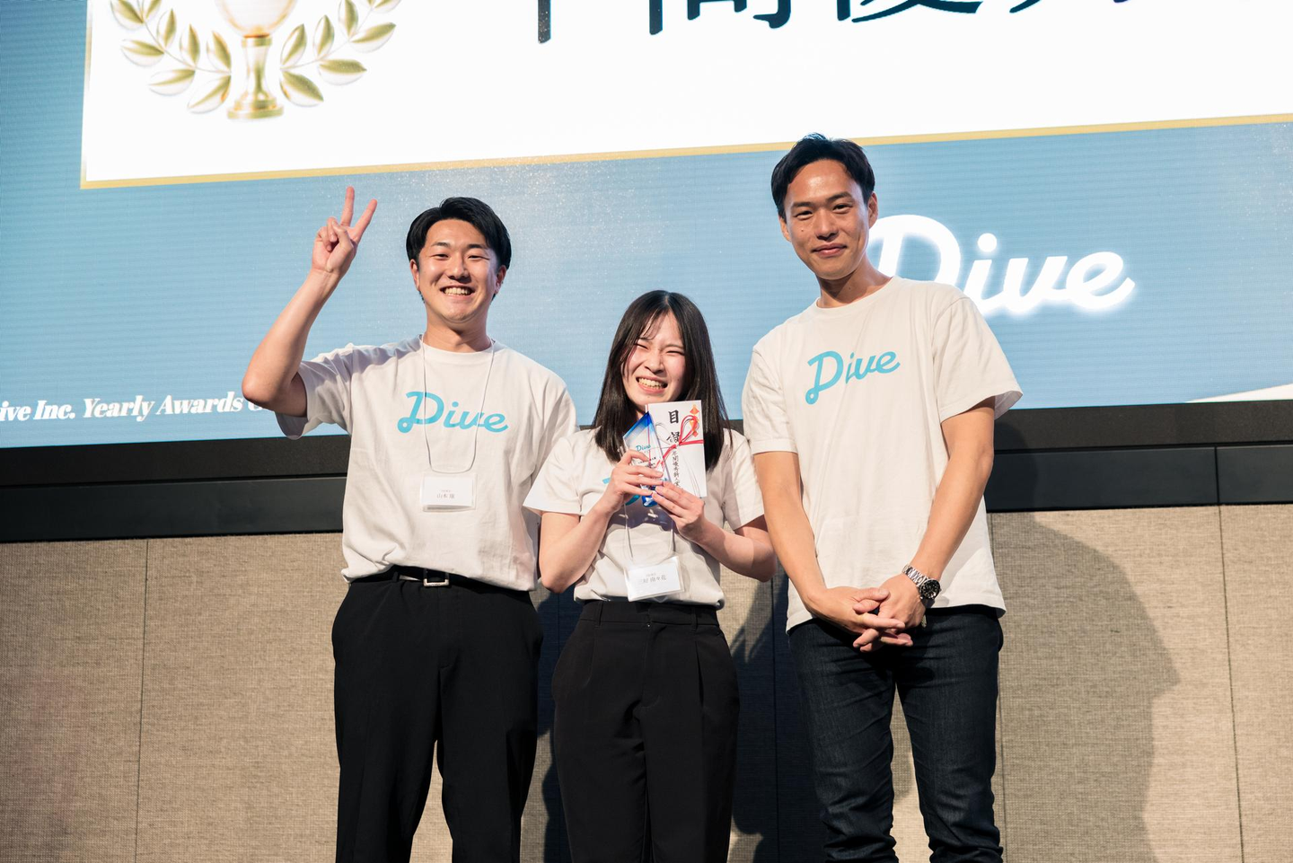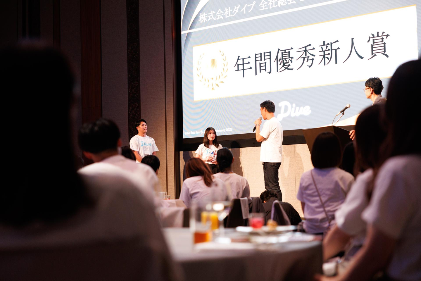 (▼入社1年目、年間最優秀新人賞の受賞シーン「ダイブ全社総会2024」にて)