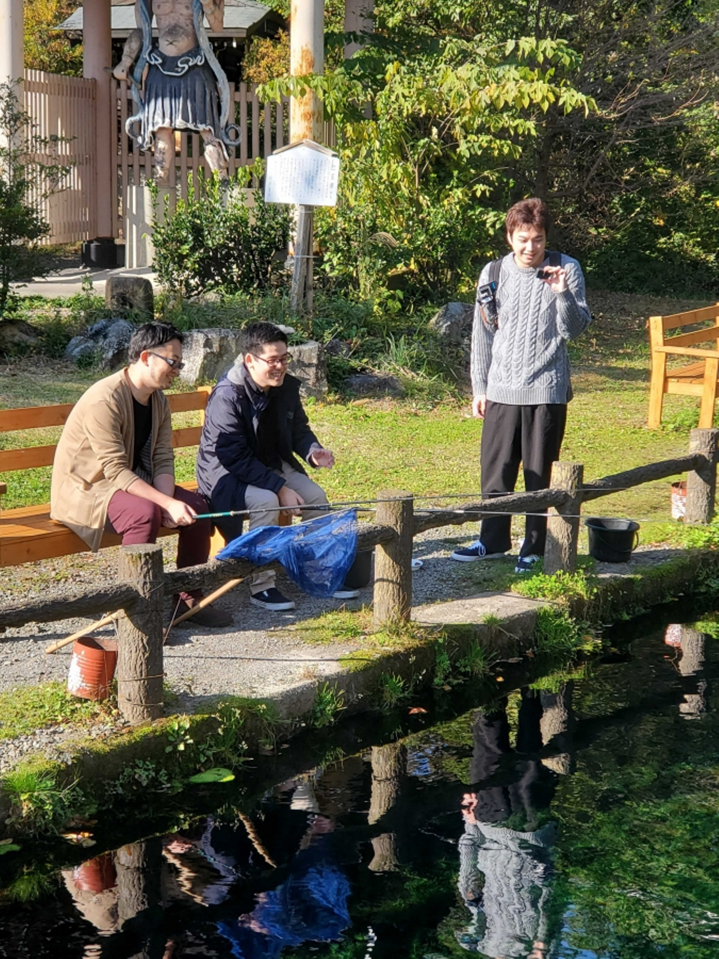 こちらは仁王尊プラザという釣り堀施設で、釣りを楽しんでいる様子!