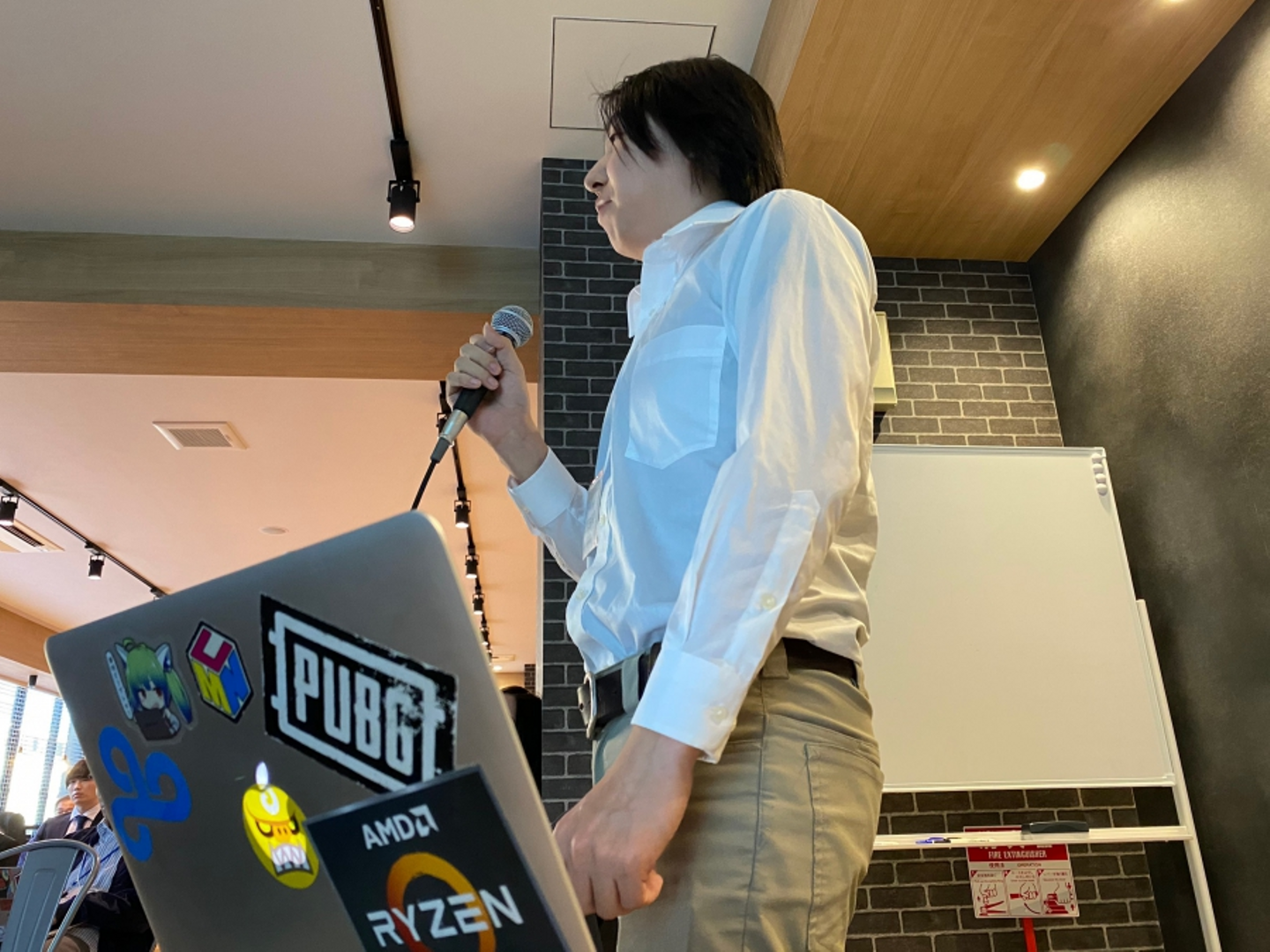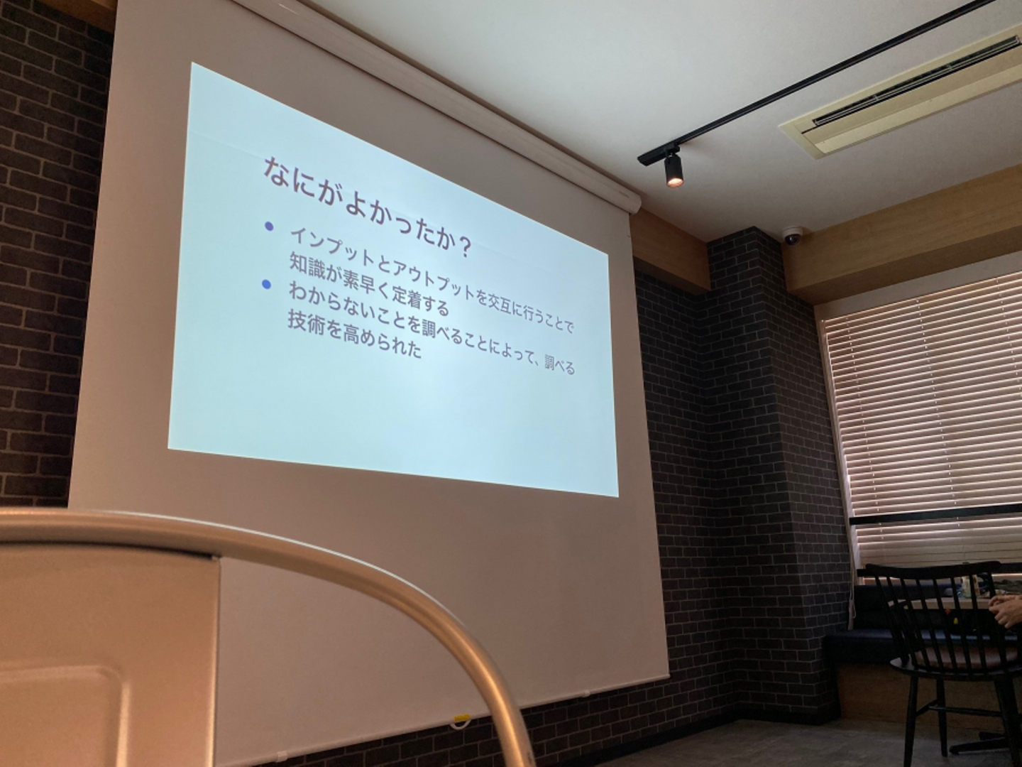 社員LTの様子です。今回はフロントエンドエンジニアの原田さんが「アウトプットをしてみよう」をテーマにLTしてくれました!