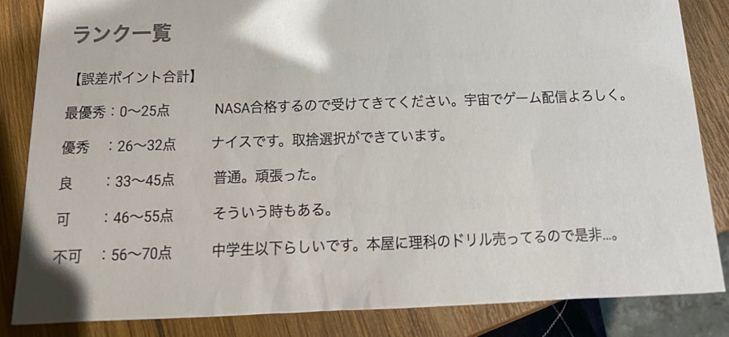 誤差ポイントを集計した結果、チームでの合計が19ポイント!ひじきぼーい個人だと16ポイントでした!正直テンションも上がりました(笑)