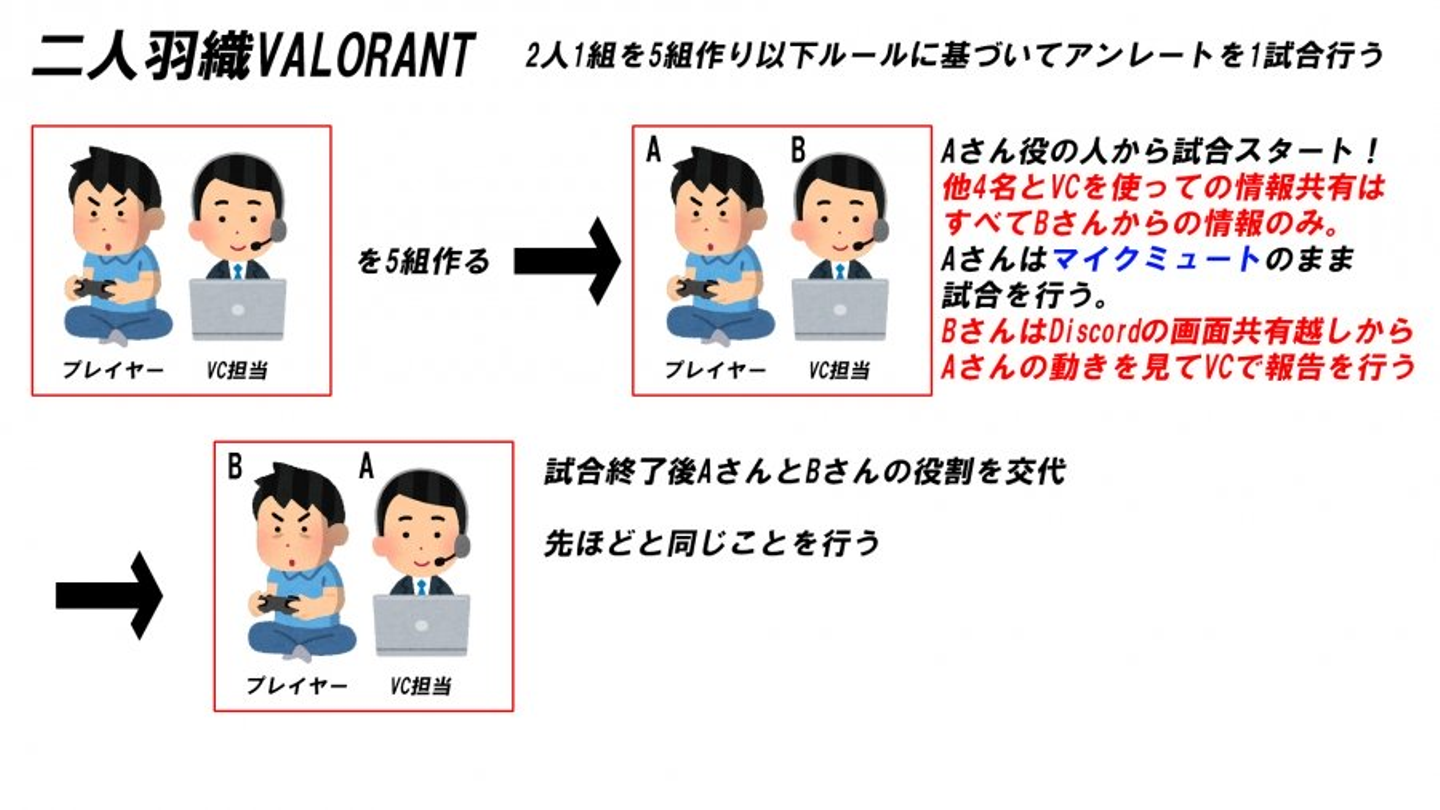 ・プレイヤー2はプレイヤー1の画面をDiscord上で見ながらVCにて味方に報告する役