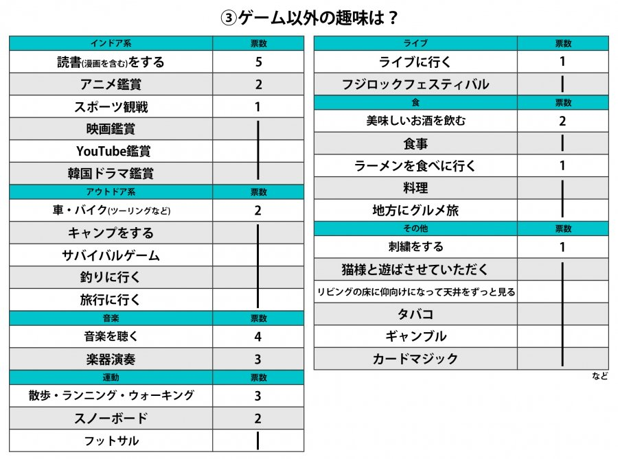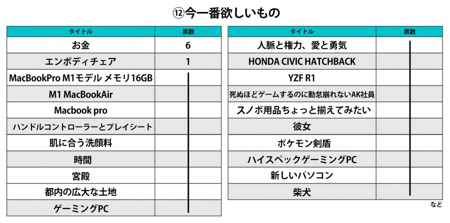 前回のアンケートとはまた違う内容で楽しんでいただけたのではないでしょうか?