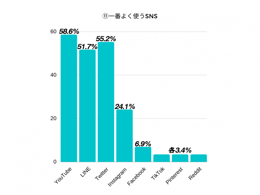 すーちゃん「インスタとtiktokが上位にくると思っていましたが、AK社員には全然使われてないですね(笑)LINEは確かにみんな使うので分かりますがYouTube、Twitterが圧倒的でした!」