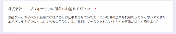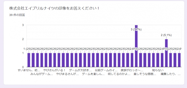そしてありがたいことに悪い印象の答えがありません。今後もこの調子でいきたいですね。