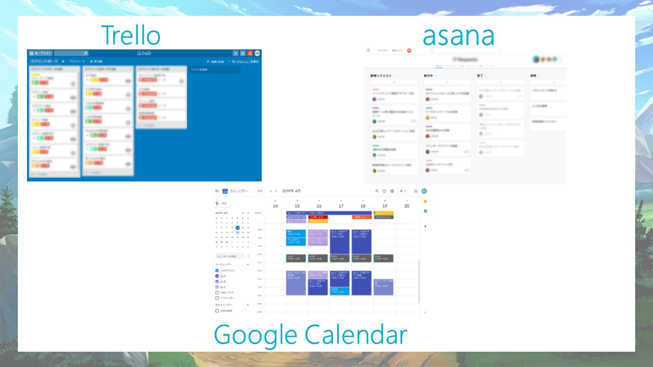 社会人になりたての頃は、タスク(やるべき仕事)をどういう優先順位でやったらいいかって悩むことも多いですよね。東さんは業務の見える化を意識して管理しているそうです。東さんがよく使用されているのは、Trelloやasana、Googleカレンダー。