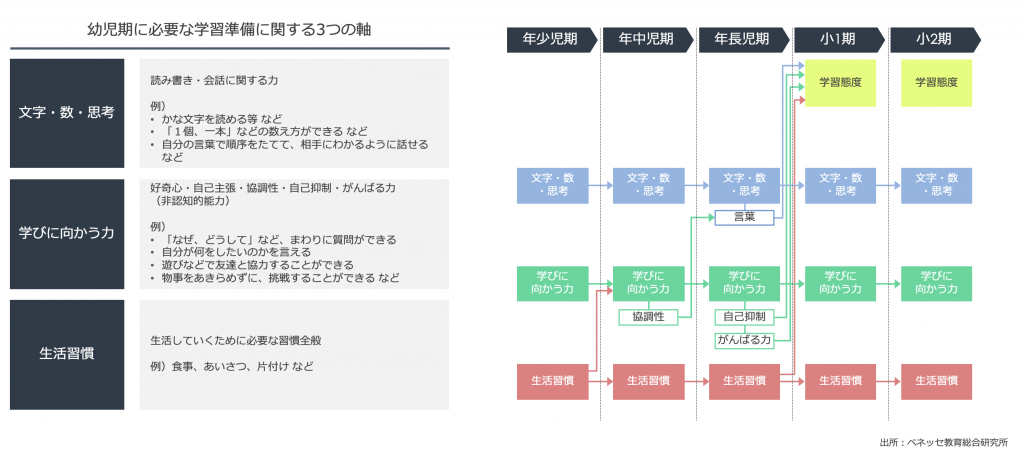 とはいえ、幼児期における知育の取り組みが、その後の情緒発達や思考力、判断力にどのように影響するかは長年研究されており、一定程度の因果関係が見出されています。