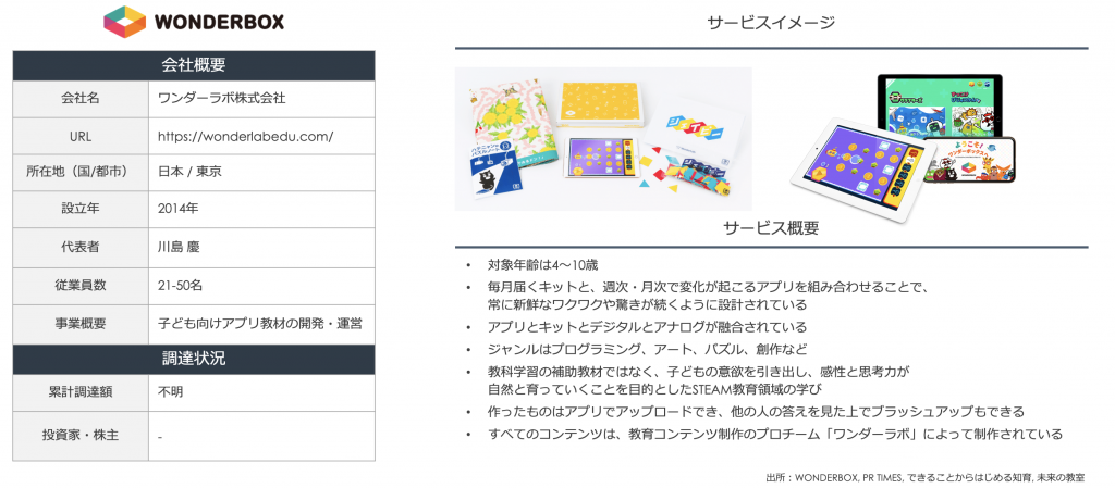 WONDERBOXは、2020年4月からサービス提供開始したばかりの、STEAM教育を目的としたサブスクの知育通信教材です。