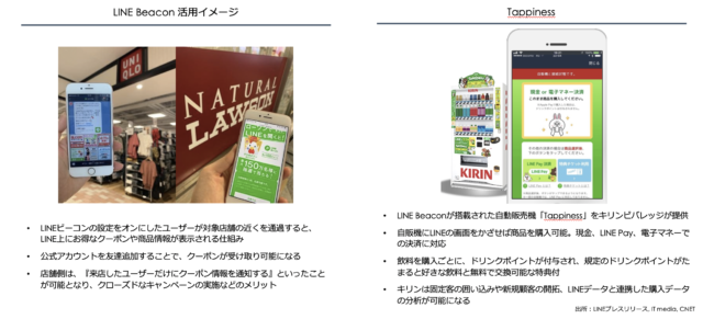 Beacon端末からクーポンやセール情報、特別なメッセージなどを、LINE公式アカウントを経由して配信できるサービスです。