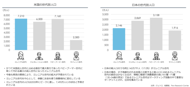 日本国内でも、総人口の約22.3%がミレニアル世代と言われており、ターゲットユーザー層として無視することのできないボリュームとなっています。