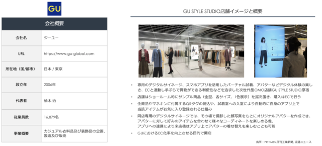 GU STYLE STUDIOは、専用のデジタルサイネージ、スマホアプリを活用したバーチャル試着、アバターなどのデジタル体験の楽しさに加え、ECと連動し、手ぶらで買い物ができる利便性などを追求した「次世代型OMO店舗」であることが特徴です。