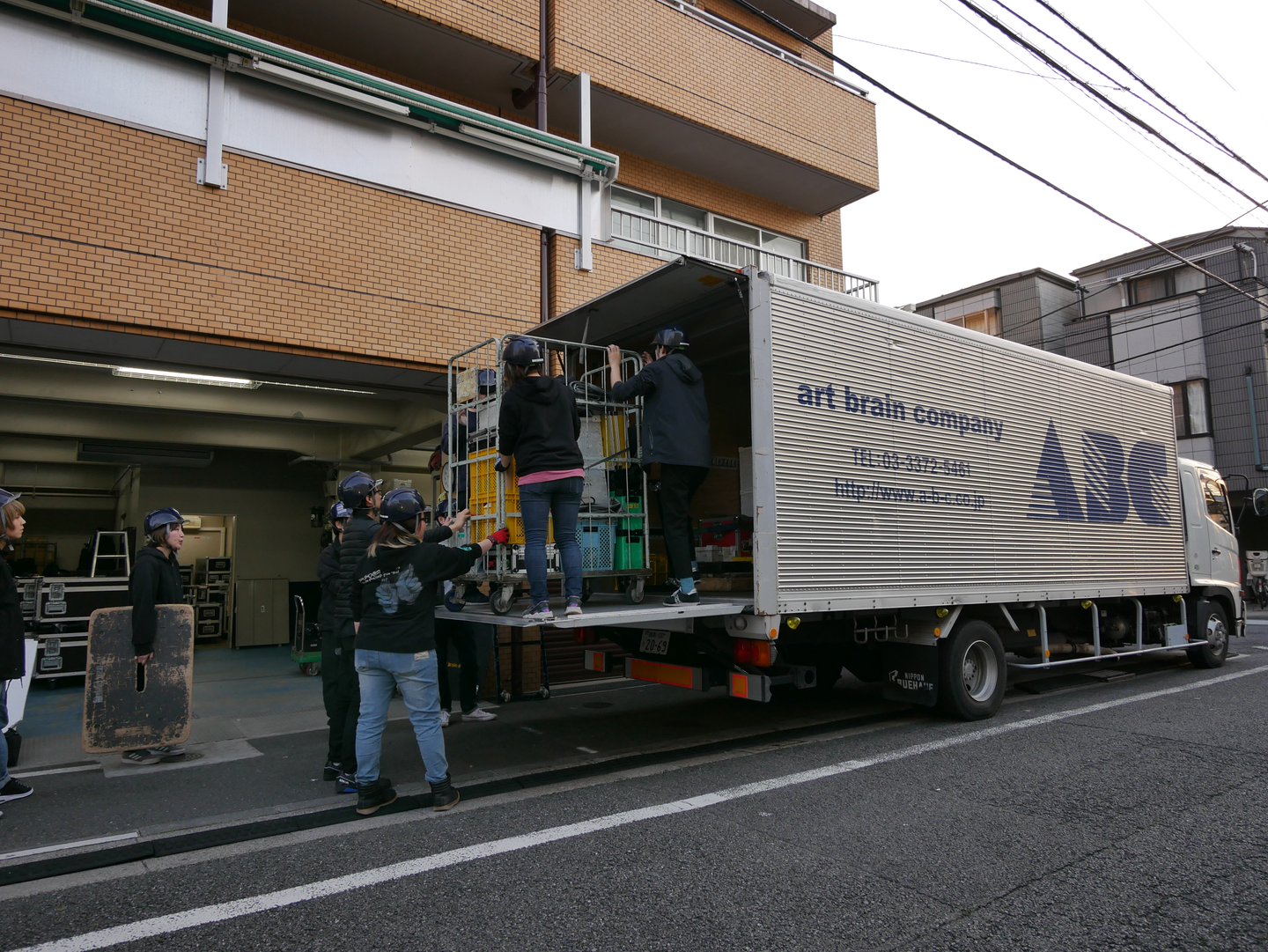 もちろん、照明・音響部の社員も準備、積み降ろしと業務に当たります。