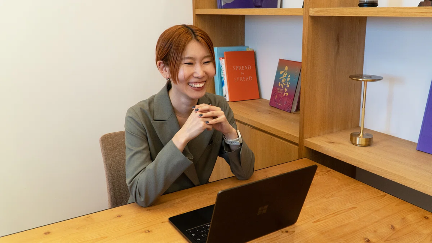 「これまでの多様な経験や、センスの部分を評価してもらえたのが嬉しかったです。また、社長も旅と音楽が好きなので、私のエピソードをたくさん引き出してくれて、価値観が合うと感じました。好きなことをデザインにも生かせそうだと考え、ここで働きたいと思いました」
