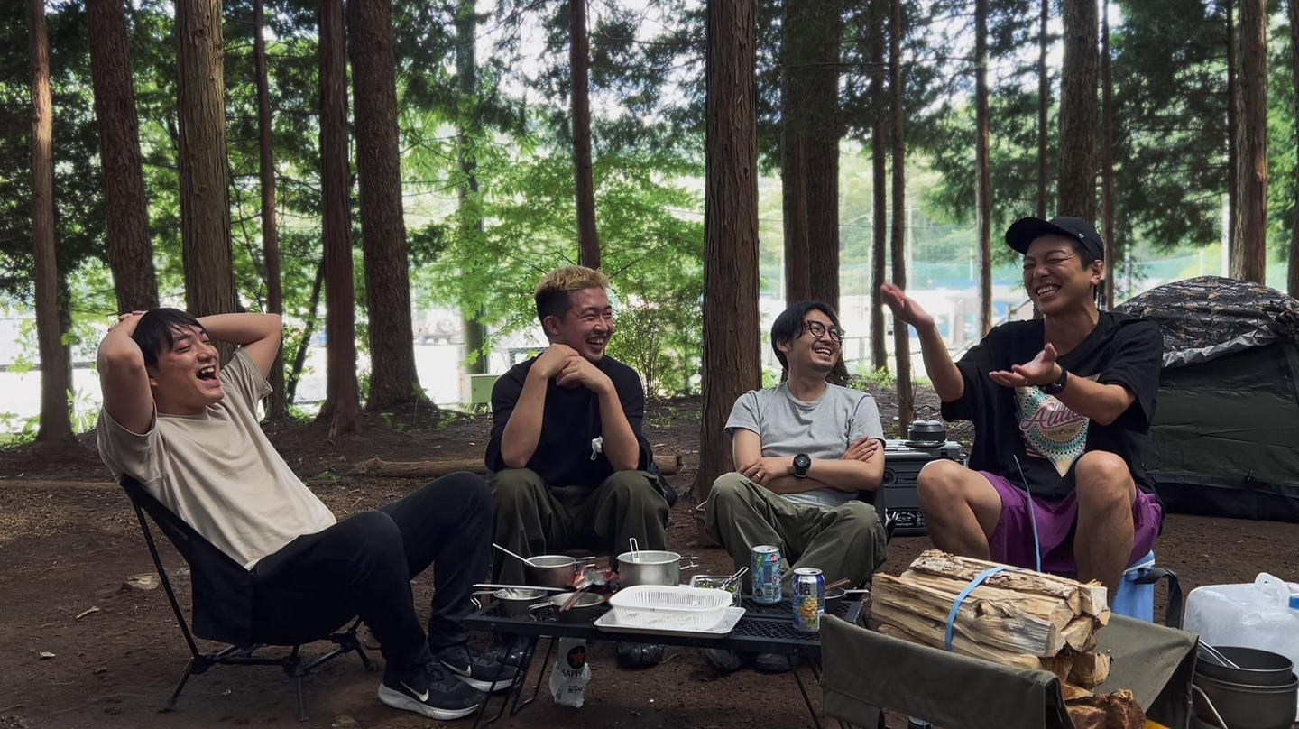 お休みの日には仲間同士で本格的なキャンプに出掛けることもあります。アウトドアが好きすぎて、社内にキャンプスペースが出現したことも。