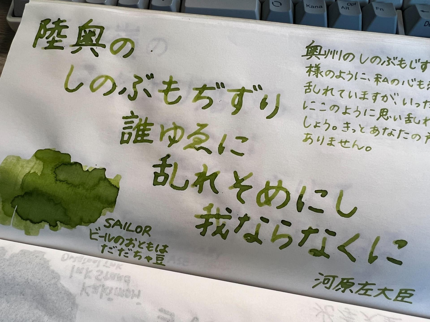 インク、ガラスペンのイベントなどで仲良くなったお友達とLINEでインクやガラスペンの情報を共有したりしています。自分で書いた書写の字をたまにアップしたりして、いろいろな方からコメントを頂いたりしています。