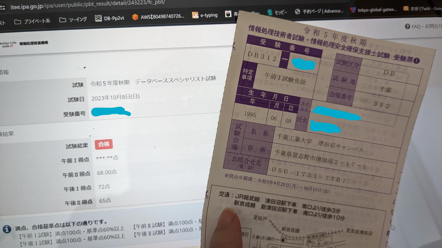 もともと高校2年までに応用情報技術者試験を獲得していたのもあり、データベースに関する基本的な知識はどちらかというと有している方(だと思う)でした。