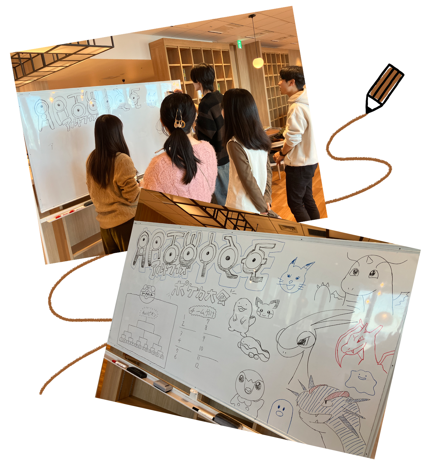 (↓部員みんなでお絵描き大会🖍️🎨それにしても、アルト社員画伯のポケモンたち上手すぎませんか!?)
