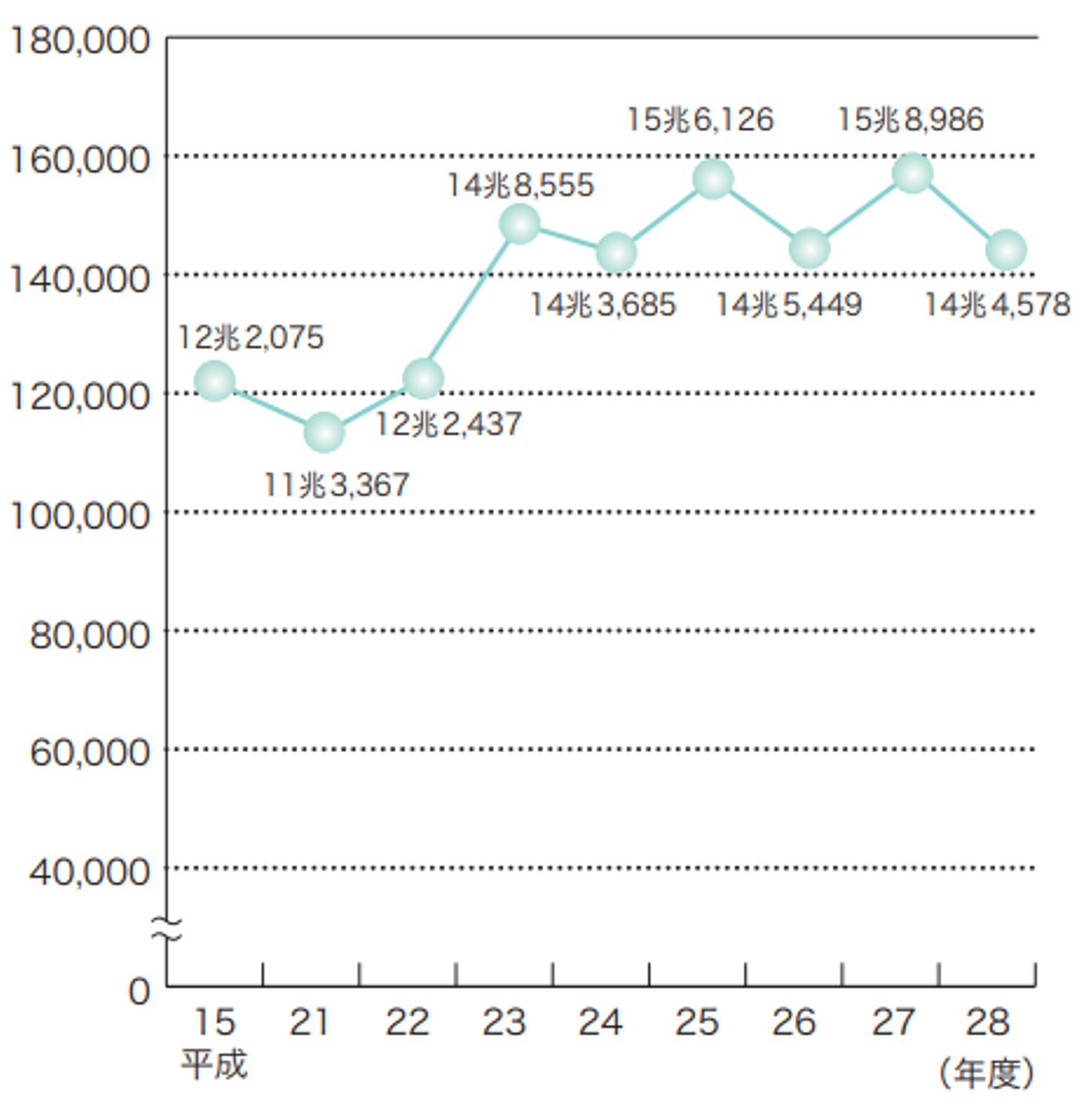 図2) トラック運送事業の営業収入の推移(単位:億円)