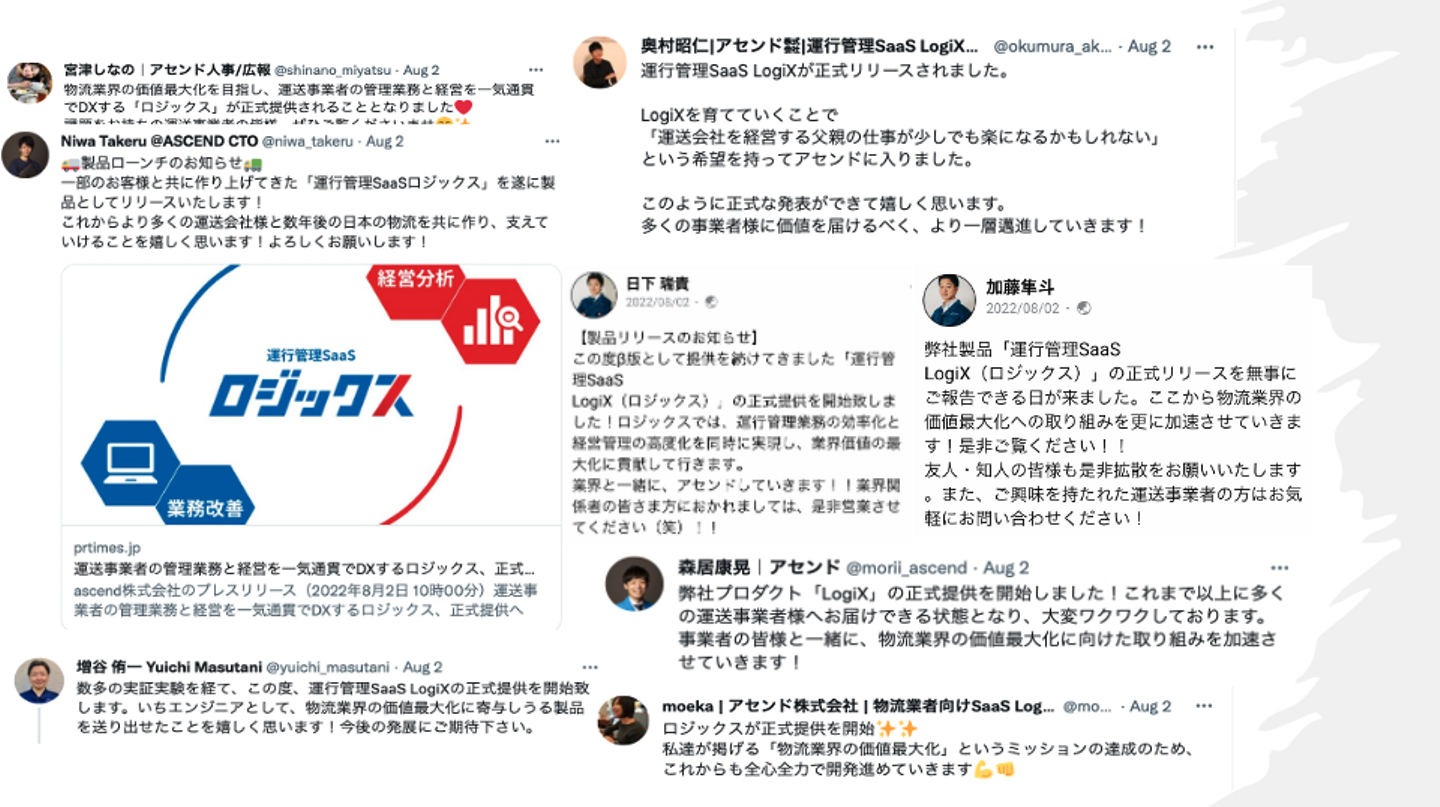 また、こちらのプレスリリースは、物流業界紙であるLOGISTICS TODAYや日本海事新聞、物流ニッポン、物流ウイークリー、LOGI-biz onlineの記者の方にもご関心をお寄せいただき、ご取材をいただきました。注目を力に変え、ここからしっかり価値を運送事業者様に届けていきたいと思います。