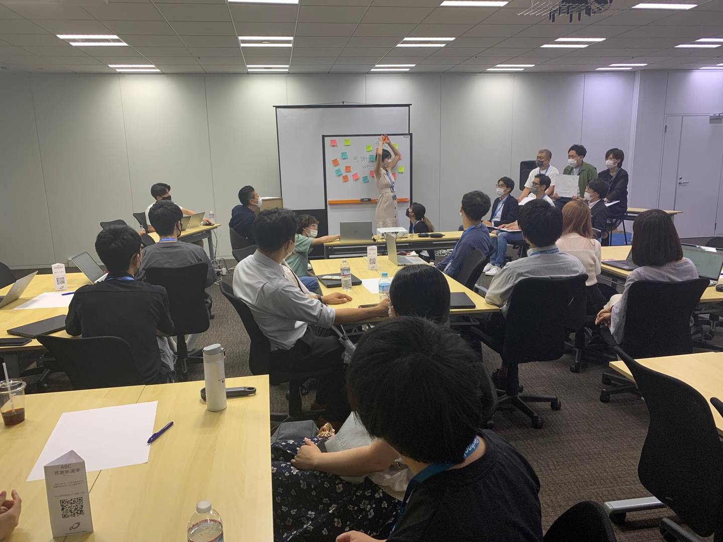 井出:今回は先月の全社定例の振りかえりを行いました。ABCで一番大きくて重要な定例会が全社定例なので、必ず社長と先月の運営を振り返って改善点を探しています。もっと全社員のつながりが得られるように毎月アップデートをかけているんです。全社定例で行うグループディスカッションや、アセントークといったコンテンツの承認も社長にして頂くんですよ。