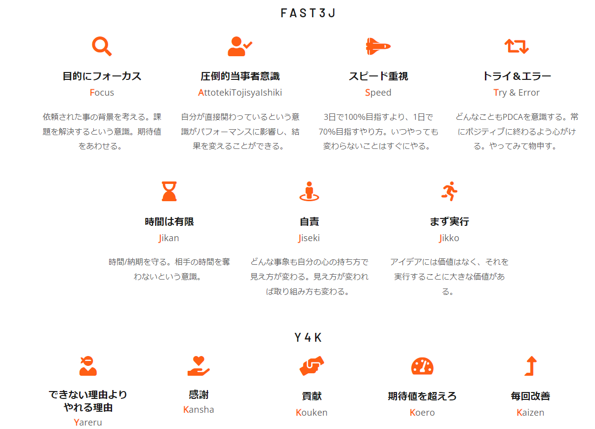 それは、ABCの掲げる価値観『FAST3J』の行動指針と『Y4K』のマインドを体現できる人ほど活躍している傾向にあります。
