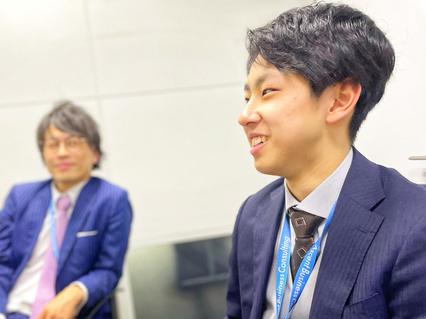 秋田:僕は”就活の軸”みたいなのが営業だったんですけど。正直仕事って、できたらしたくないじゃないですか。何もせずに生きていきたい(笑)ですけど、それは無理なので、続けられるモチベーションがあったら、楽しく仕事できるんじゃないかと考えました。 営業には、売り上げを出すとか、提案が通るみたいな、そういうモチベーションを保ち続けられるようなイベントがあるなっていう風に思っていて、営業いいなと。そんな中で、マイナビとかの就活媒体でたまたまABCを見つけ、事業的にもいろんなことやってて面白そうだなっていうのと、ソリューションを売るというのが結構楽しそうだなって思って、受けました。
