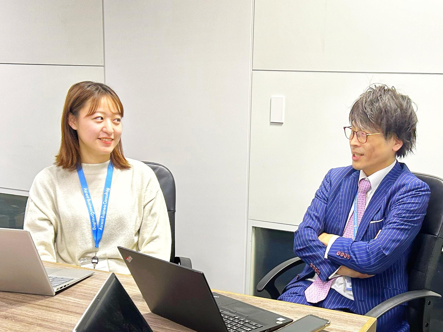 秋田:いや~、楽しいですね。普通にただ仕事してるだけじゃなく、色々話しながらしてるじゃないですか。必要なことも、そうじゃないこともコミュニケーションを取りながらやってるから、コンサルティング事業部側の話とか、いろんな情報が入ってきて面白いなと思います。