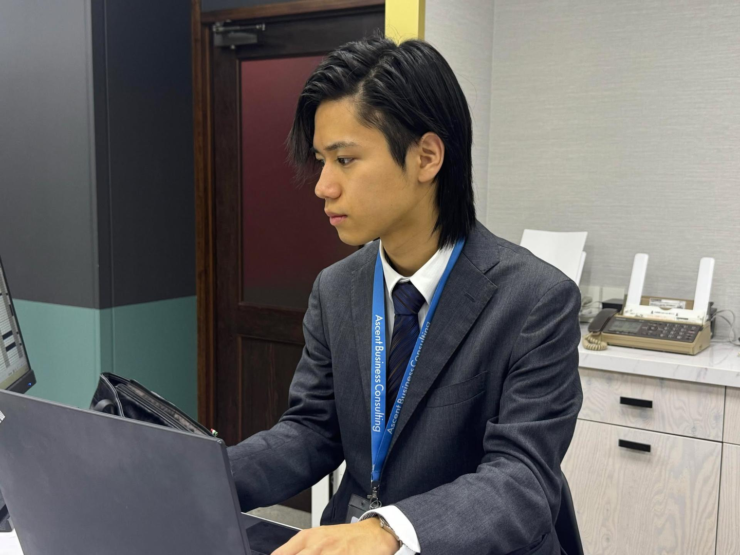 益田:同じくコンサルティング事業部、24卒の益田直と申します。現在は大手印刷会社の新規事業立ち上げ支援をしています。事業開始に向けた営業計画や課題の検討をしていて、具体的には売上や収益を予想してシミュレーションを作成したり、その結果をもとに、どうやったらもっと収益性を上げられるか施策を考えたりしています。