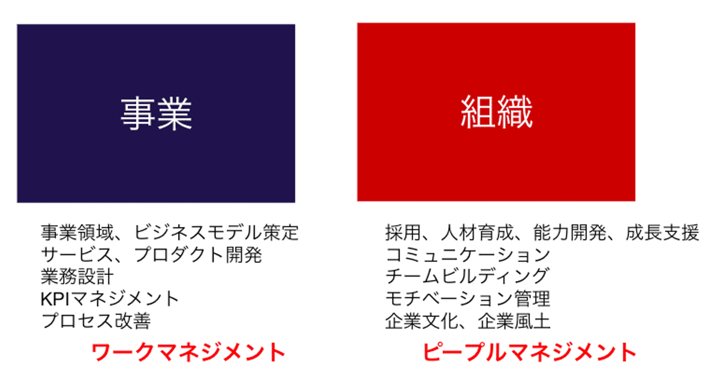 採用、育成、能力開発、成長支援、コミュニケーション、チームビルディング、モチベーション管理、そして企業文化・企業風土の醸成など、組織を構築していくこと。