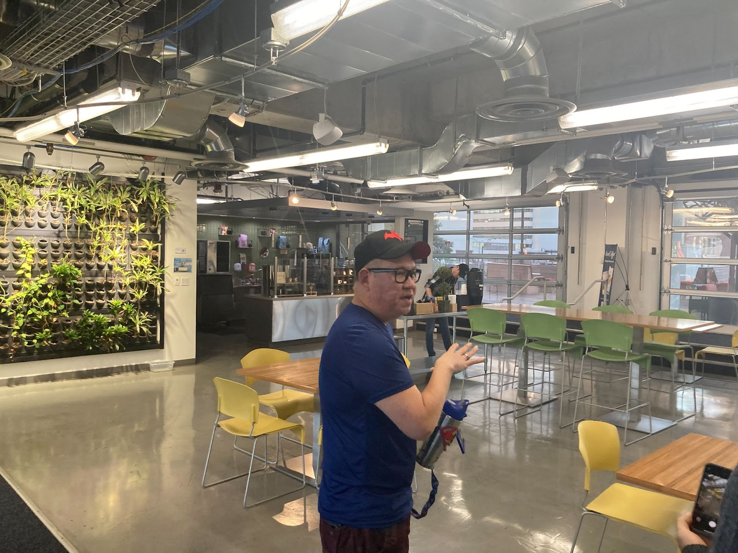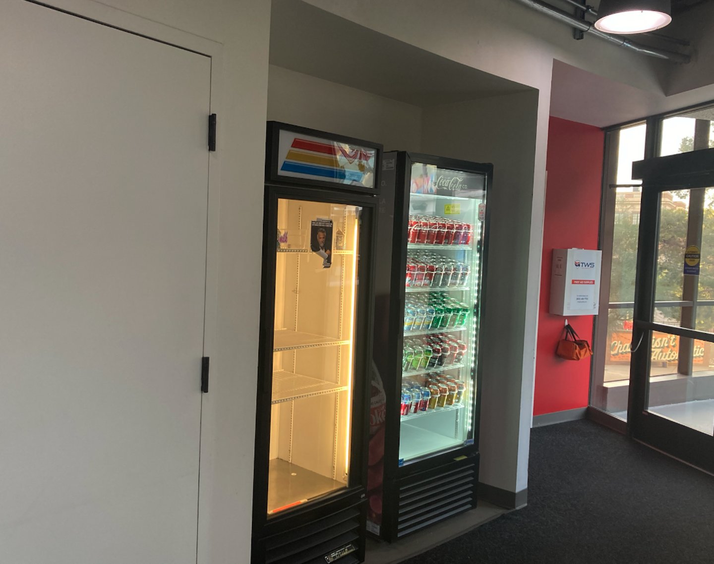 交流を生み出すために、動線も工夫しています。たとえば、フード用の自販機と飲み物用の自販機を別のフロアにすることで、どちらも購入したい従業員がすれ違うように工夫されています。