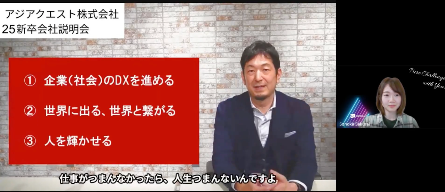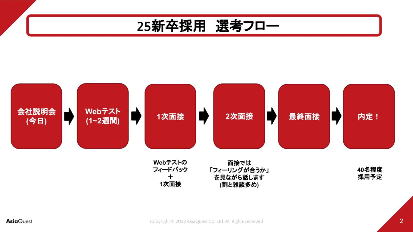 アジアクエストの根本的な価値や、入社後に体験できる情熱や将来性を感じ取ってもらえます!