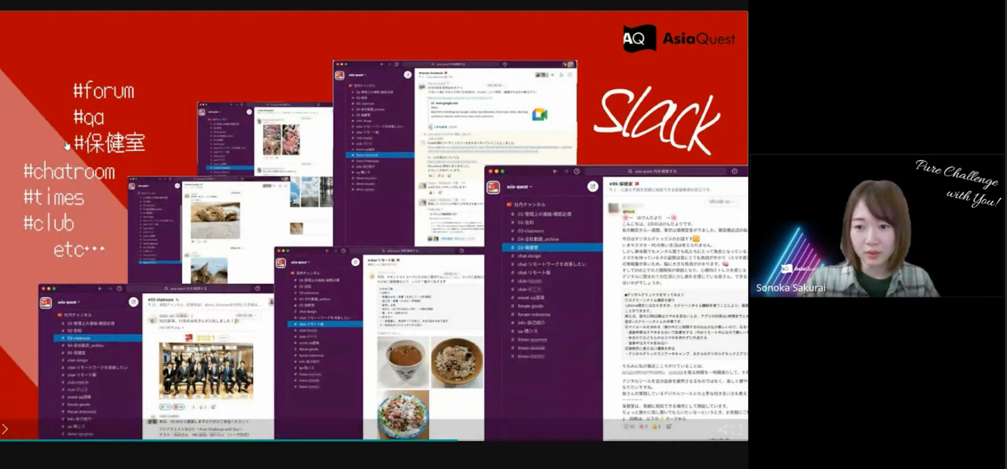 採用ピッチやスライドをみながら、アジアクエストの会社紹介を行います。