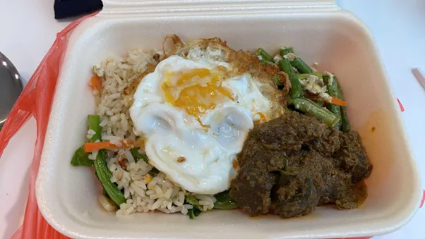 バザーでは俗にいう「ミックスライス(自分でごはんとかおかずを取って盛り付ける)」が人気です。ちなみに写真ぐらいの量で驚異の120円。お腹一杯になります。