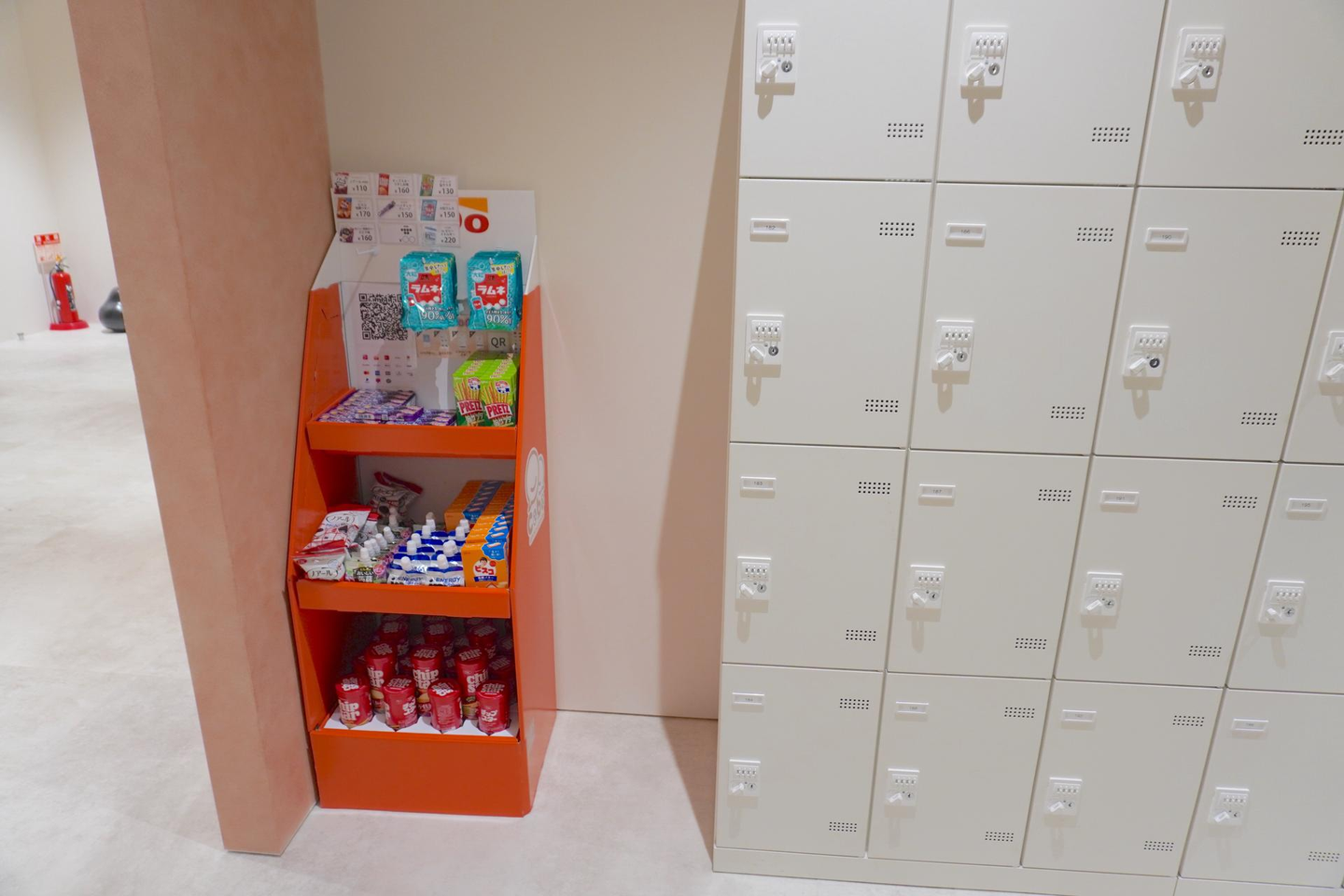 オフィスグリコ(有料)とロッカー。無料のウォーターサーバーやコーヒーメーカーもあります。