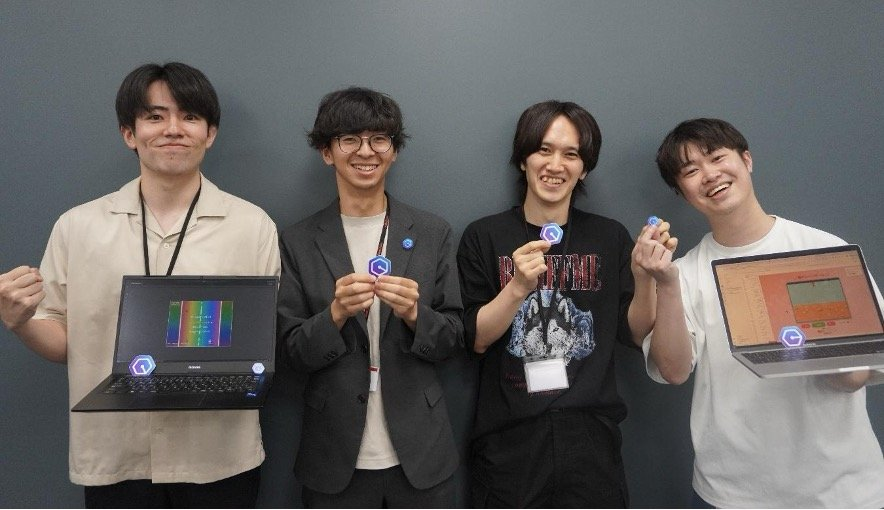 「猫クレーンゲーム」の発表。かわいい猫キャラクターを全面に出した癒し系ゲームです。 参加者の投票の結果、「レインボーレーシング」チームが勝利!!! そして、発表を行った3チームに、Amazon Qステッカーがプレゼントされました!!皆さんのこの表情からも楽しかったことが伝わってきますね!