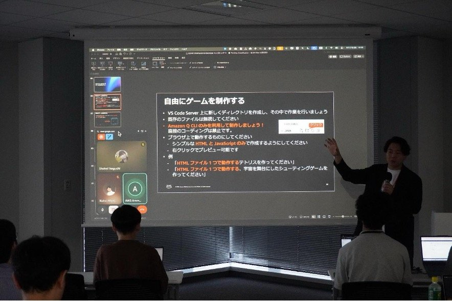 トレーニング(座学)の様子 ■Amazon Q Developerハンズオン(後半) セミナーの後半はAmazon Q Developerを実際に使用して、チームごとにゲーム制作を行うハンズオンを行いました。