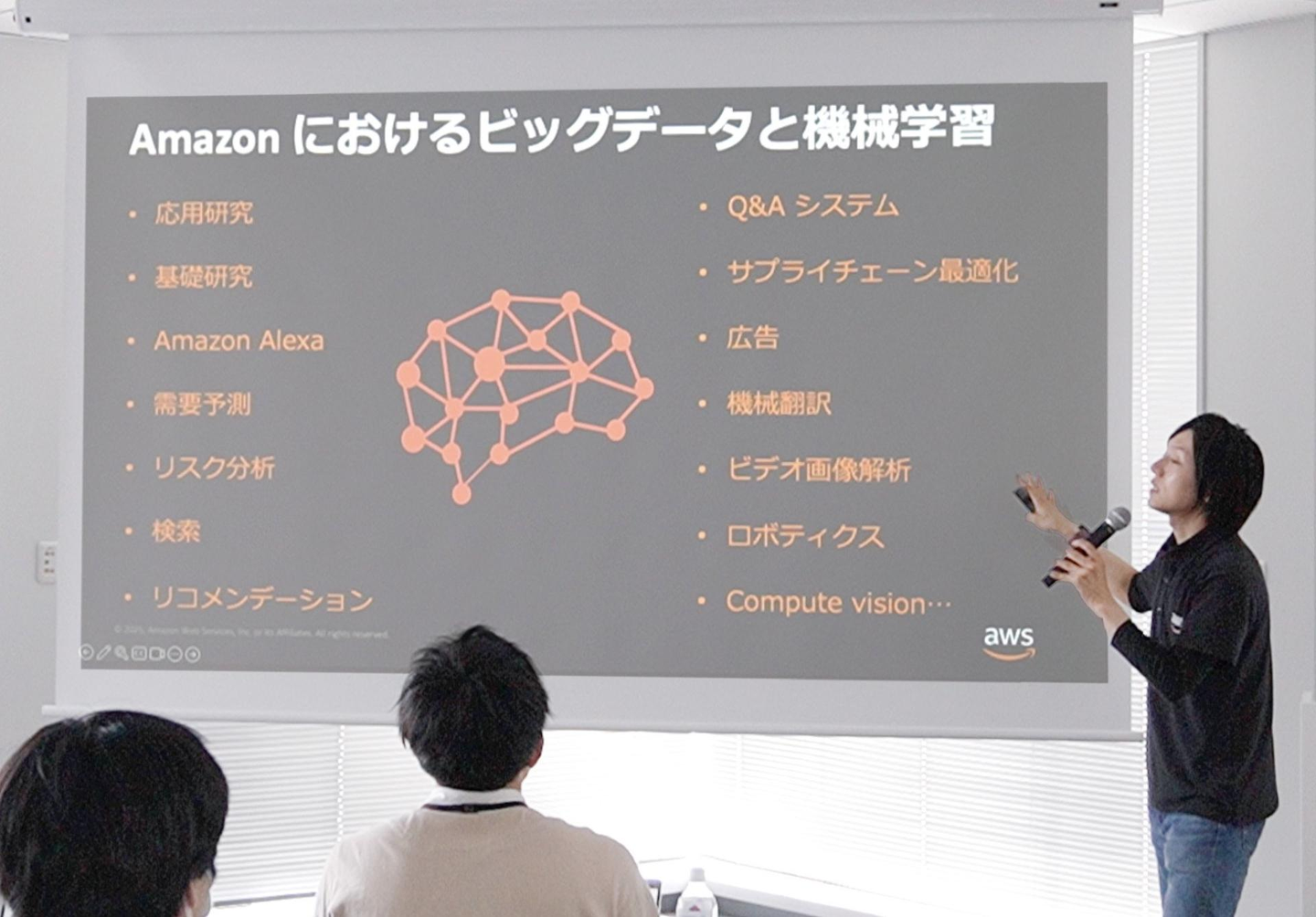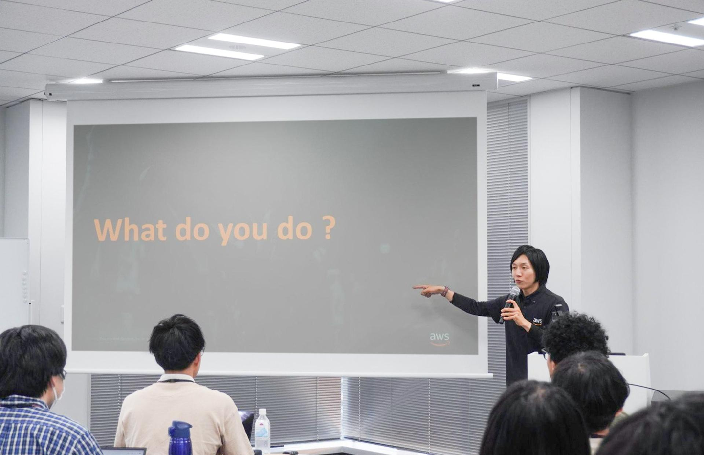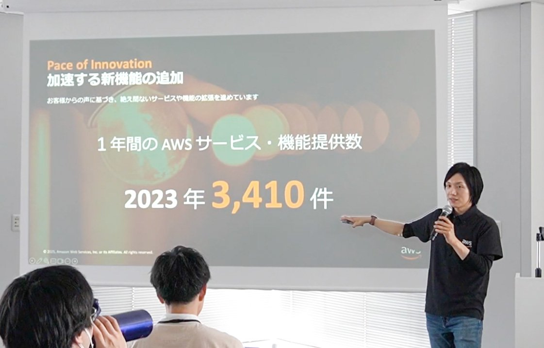 「AWSとは何か?」についてを、通常のWeb検索では得られない視点から語るセッションが始まりました。 アイスブレイクを交えつつ、参加者の反応を見ながら柔軟に話題を展開するスタイルで、会場全体が徐々に引き込まれていきました。